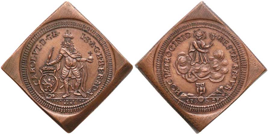 | 1295. | 182. aukce. – Žeton dle výtěžkového dvoudukátu Karla VI. z jílovského zlata z roku 1727, Cu klipa, 62,14 g, signováno /J. Jelínek/, raženo 52 ks, RS-56d. | 0/0 | 400,- | 440,- |