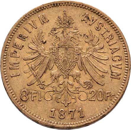 | 59. | 8 Zlatník 1871 (pouze 34.000 ks), 6.431g, nep.hr.,