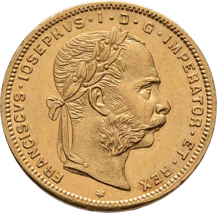| 61. | 8 Zlatník 1874 (pouze 42.000 ks), 6.425g, nep.hr.,