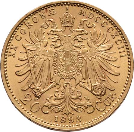| 70. | 20 Koruna 1893, 6.753g, nep.hr., nep.rysky, pěkná