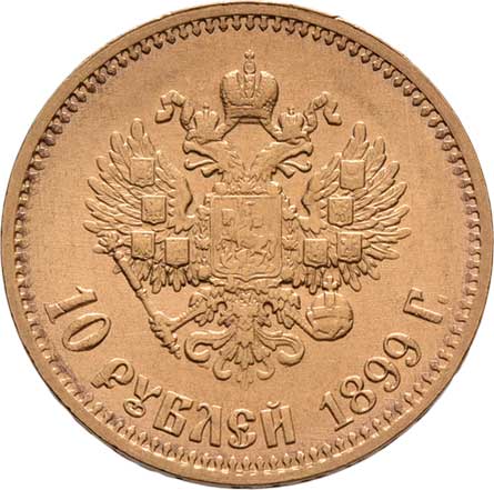 | 206. | 10 Rubl 1899 AG, Petrohrad, Y.64 (Au900), 8.592g,
