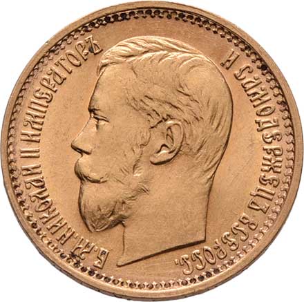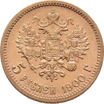 | 211. | 5 Rubl 1900 FZ, Petrohrad, Y.62 (Au900), 4.288g,