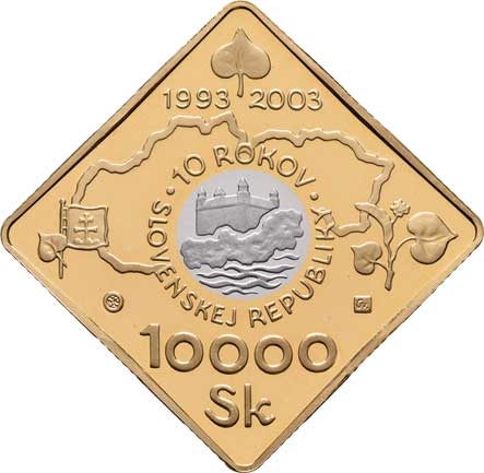 | 228. | 10.000 Koruna 2003 - 10.výročí vzniku SR - bimetal,