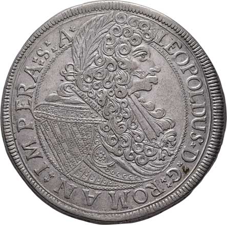 trůnící Leopold I., znaky, písmo / pevnost v krajině, písmo, Sign.GH, Ag 30mm, 9.634g, dr.hr., nep.rys. R! |