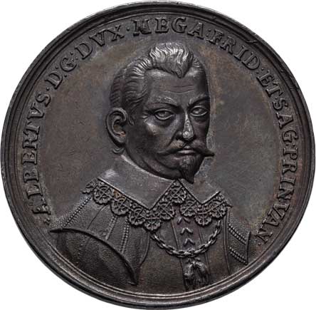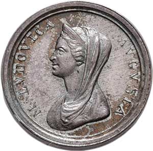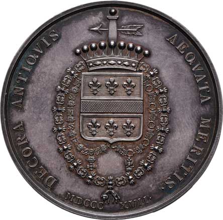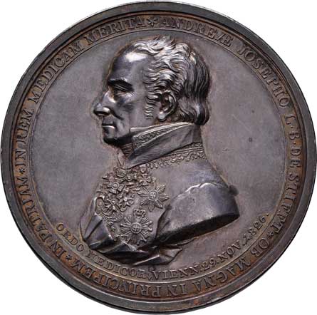 portrét zprava, němec. opis / tři alegorické postavy, opis a nápis, Sign., měď 70 mm, 130.816g, nep.hr. |