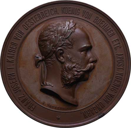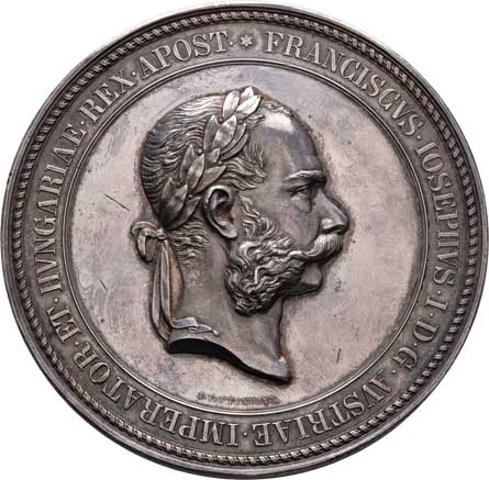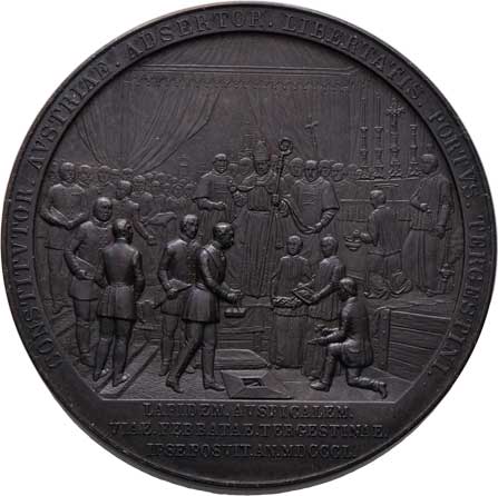 poprsí císaře zleva, opis /slavnostní scéna v Terstu, opis a nápis, Sign., bronz 58 mm, H.3751(Ag), patina |