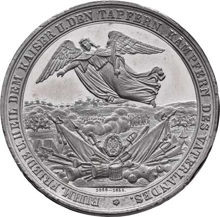 poprsí zleva, vavříny a jména generálů / anděl nad bojištěm, opis, cín 40mm, 23.394g, poškoz. pův. etue |