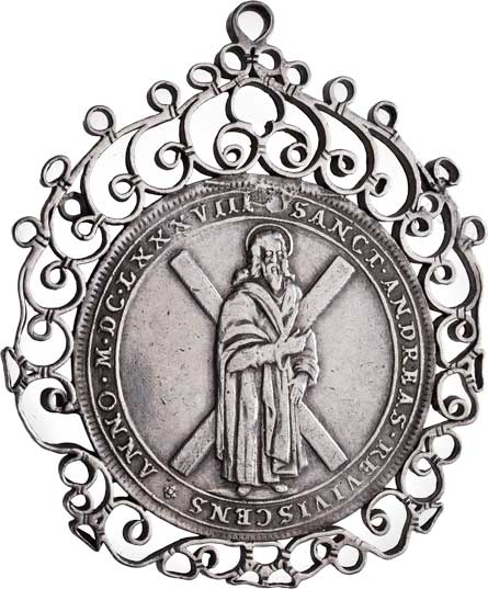 v ozdobné kartuši, Ag 31mm, 9.551g, PR.54, Don.3502, BPM.184, na hraně nep.stopy po zasazení, nep.rysky R! |