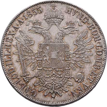 | 761. | Tolar 1855 A - hlava zprava, 25.954g, nep.hr.,