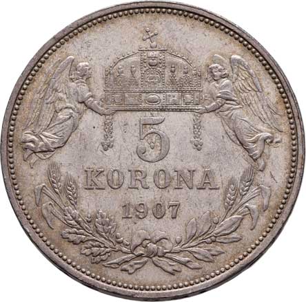 | 800. | 5 Koruna 1907 KB, 24.073g, nep.hr., nep.rysky,
