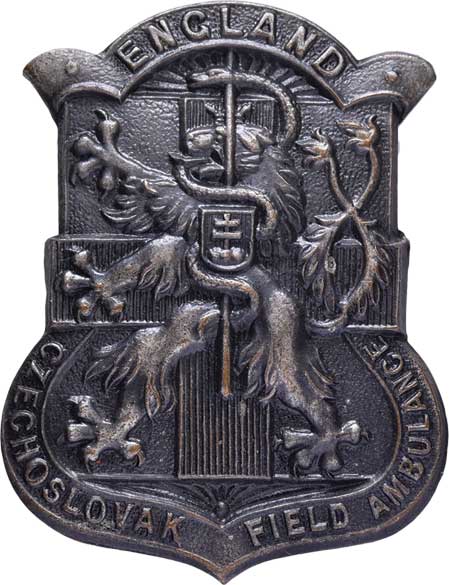 černě lakovaná mosaz 33x57 mm s upínací patkou, ex ČNS Praha - aukce 68/1854 |