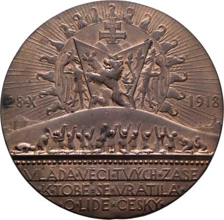zprava, opis / personifikace a znaky republik, opis a nápis, Sign., patin.bronz 70mm, 148.759g, OŠ.186 |