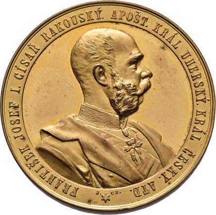 poprsí zprava, opis / 6-řádk. nápis ve věnci, Sign., zlacená mosaz 43mm, 25.312g, ŠFP.23b, skvrnky, patina |