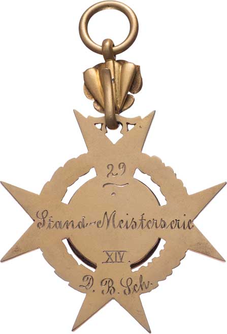 3-řádkový nápis ve věnci (nejlepšímu střelci), Sign. Pfeuffer, Nepunc., Ag 35mm, 21.782g, hr., rys., pat. |
