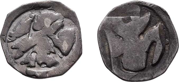 Kop. a Fried. uvádí podob. ražbu, ale s opisy na obou stranách, 0.213g, exc., nedor., pěkná patina R! |