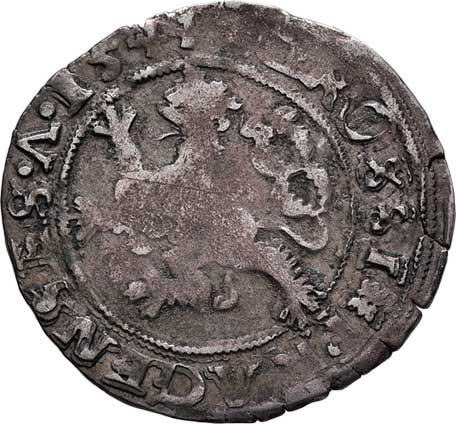 | 1400. | Pražský groš 1544, K.Hora-Hubáček, Chv.13/a.K,