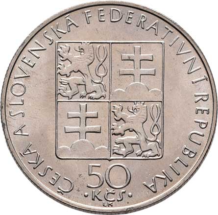 | 1692. | 50 Koruna 1990 - svatá Anežka, KM.140.1 (Ag500,