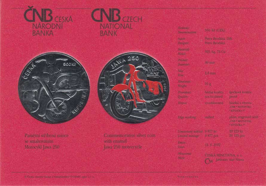 | 1701. | 500 Koruna 2022 - motocykl Jawa 250, (Ag925, 25.0g,