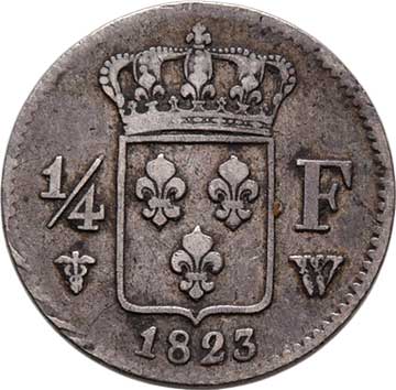 2101. 1/4 Frank 1823 W, Lille, KM.714.11 (Ag900, pouze