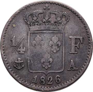 2103. 1/4 Frank 1826 A, Paříž, KM.722.1 (Ag900, pouze