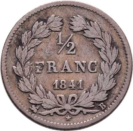 2105. 1/2 Frank 1841 B, Rouen, KM.741.2 (Ag900), 2.452g,