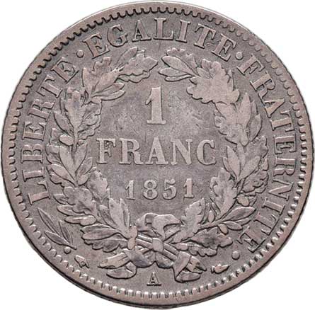 2106. Frank 1851 A - Republika, Paříž, KM.759.1 (Ag900),