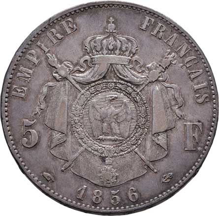 2108. 5 Frank 1856 A, Paříž, KM.782.1 (Ag900), 24.888g,