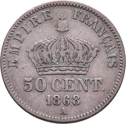 2110. 50 Centimes 1868 A, Paříž, KM.814.1 (Ag835), 2.461g,