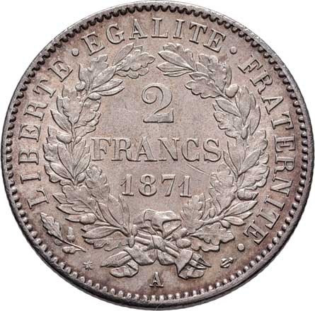 2111. 2 Frank 1871 A - revers s opisem, Paříž, KM.817.1