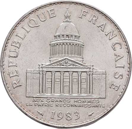 2112. 100 Frank 1983 - Pantheon, KM.951.1 (Ag900), 14.978g,