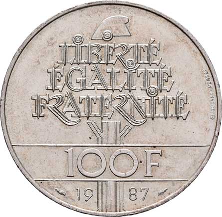 2113. 100 Frank 1987 - generál Lafayette, KM.962 (Ag900),