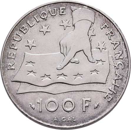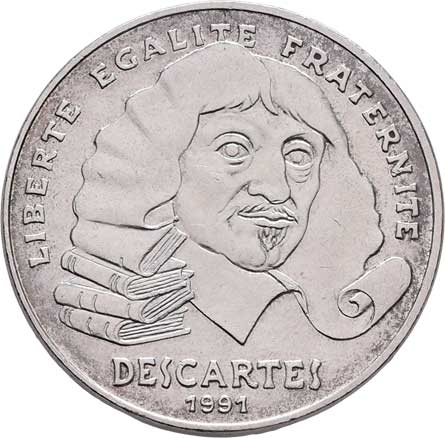 2115. 100 Frank 1991 - Descartes, KM.996 (Ag900), 14.907g,