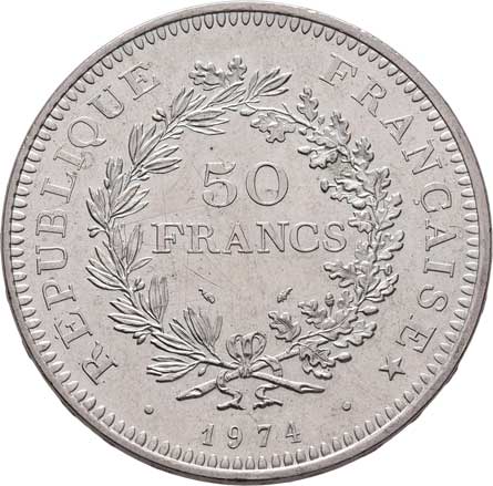 2116. 50 Frank 1974, KM.941.1 (Ag900), 29.899g, nep.hr.,