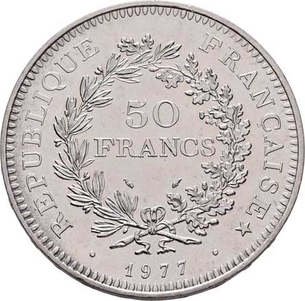 2117. 50 Frank 1977, KM.941.1 (Ag900), 29.956g, nep.hr.,