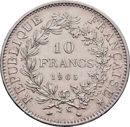 2118. 10 Frank 1965, KM.932 (Ag900), 25.013g, nep.hr.,