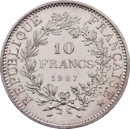 2119. 10 Frank 1967, KM.932 (Ag900), 25.043g, nep.hr.,