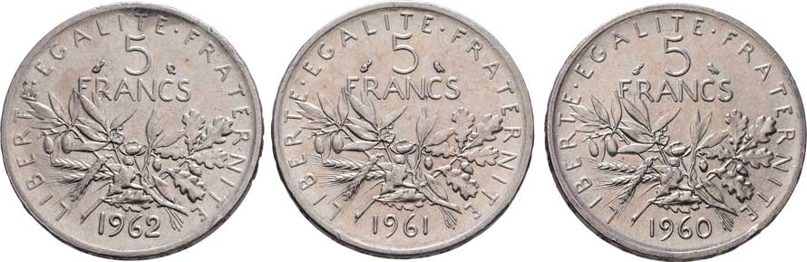 2120. 5 Frank 1960, 1961, 1962, Paříž, KM.926 (Ag835),