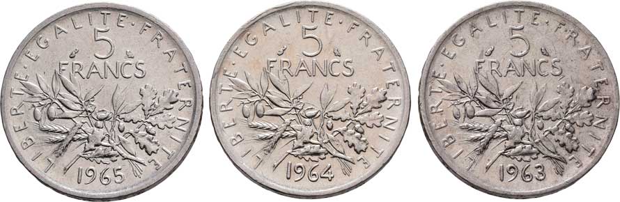 2121. 5 Frank 1963, 1964, 1965, Paříž, KM.926 (Ag835),