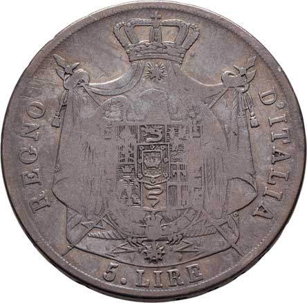 2124. 5 Lira 1812 M, Milano, Cr.10.4 (Ag900), 24.392g,