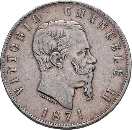 2125. 5 Lira 1871 M-BN, Milano, KM.8.3 (Ag900), 24.895g,