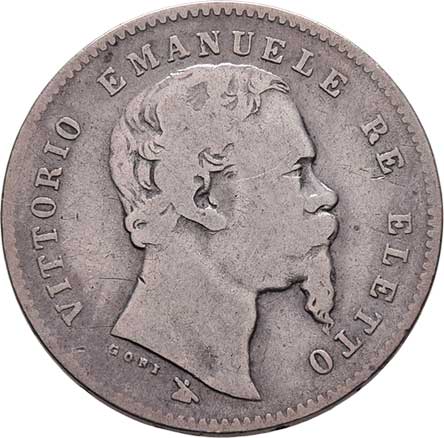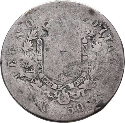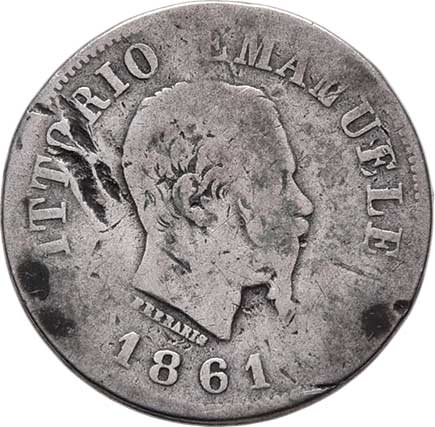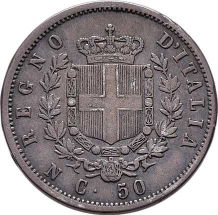 2128. 50 Centesimi 1861 T-B, v reversu znak, Torino, KM.4.2