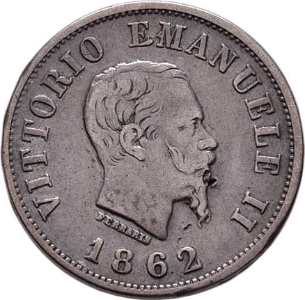 2127. 50 Centesimi 1862 N, v reversu znak, Neapol, KM.4.3