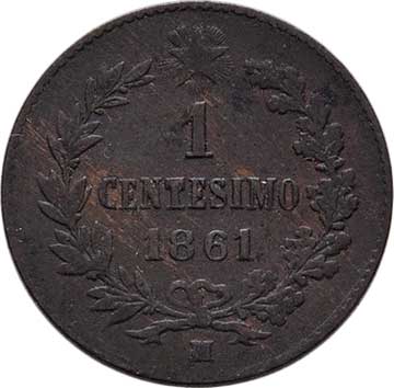 2129. Centesimo 1861 M, Milano, KM.1.1 (měď), 0.956g,