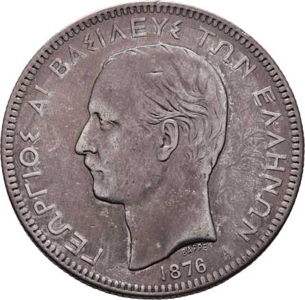 2193. 5 Drachma 1876 A, Paříž, KM.46 (Ag900), 24.488g,