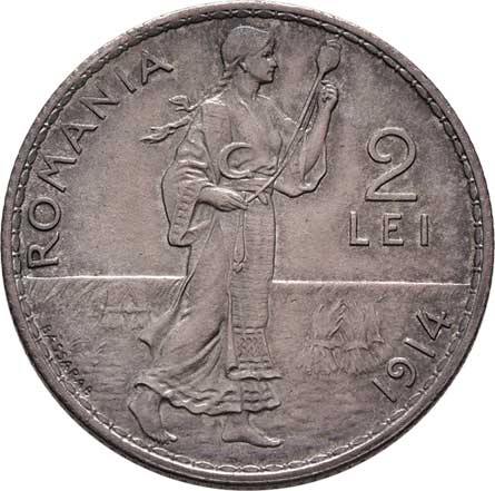 2196. 2 Lei 1914 - jubilejní, Bukurešť, KM.43 (Ag833),