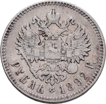 2200. Rubl 1892 AG, Petrohrad, Y.46 (Ag900), 19.770g,