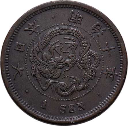 | 2593. | 1 Sen, rok 10 (= 1877), Y.17.1 (bronz), 7.009g,