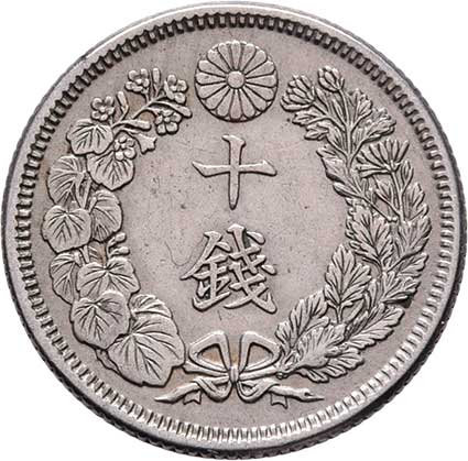 | 2583. | 10 Sen, rok 10 (= 1877), Y.23 (Ag800), 2.685g,