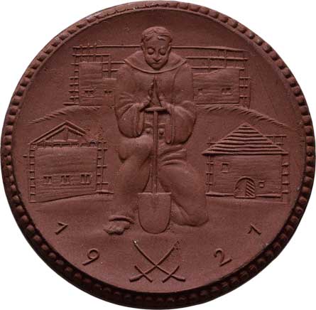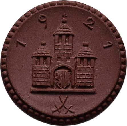 nápis/ terč, prapory, pušky, dva opisy, Sign.Brunner, cín 33 mm s původním raženým ouškem, nep.rysky |