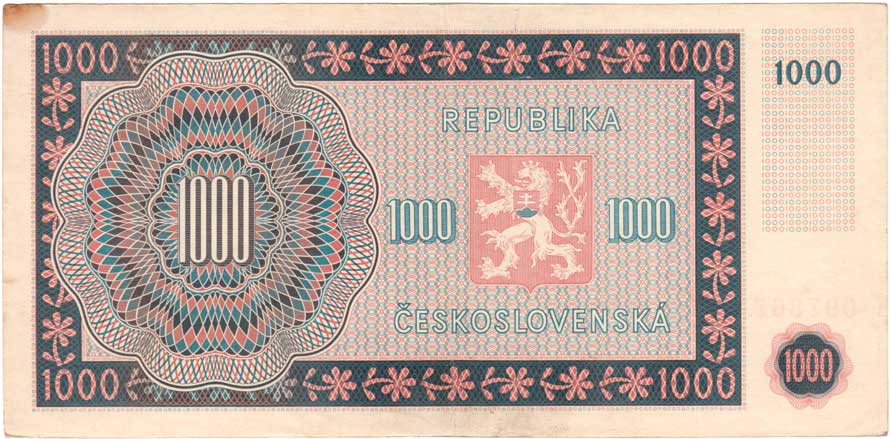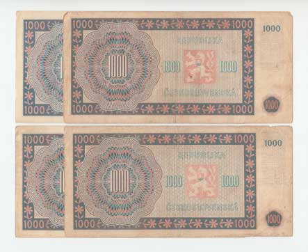 | 3213. | 1000 Koruna 1945, série 01B, 11B, 17B, 22B, BHK.78b,